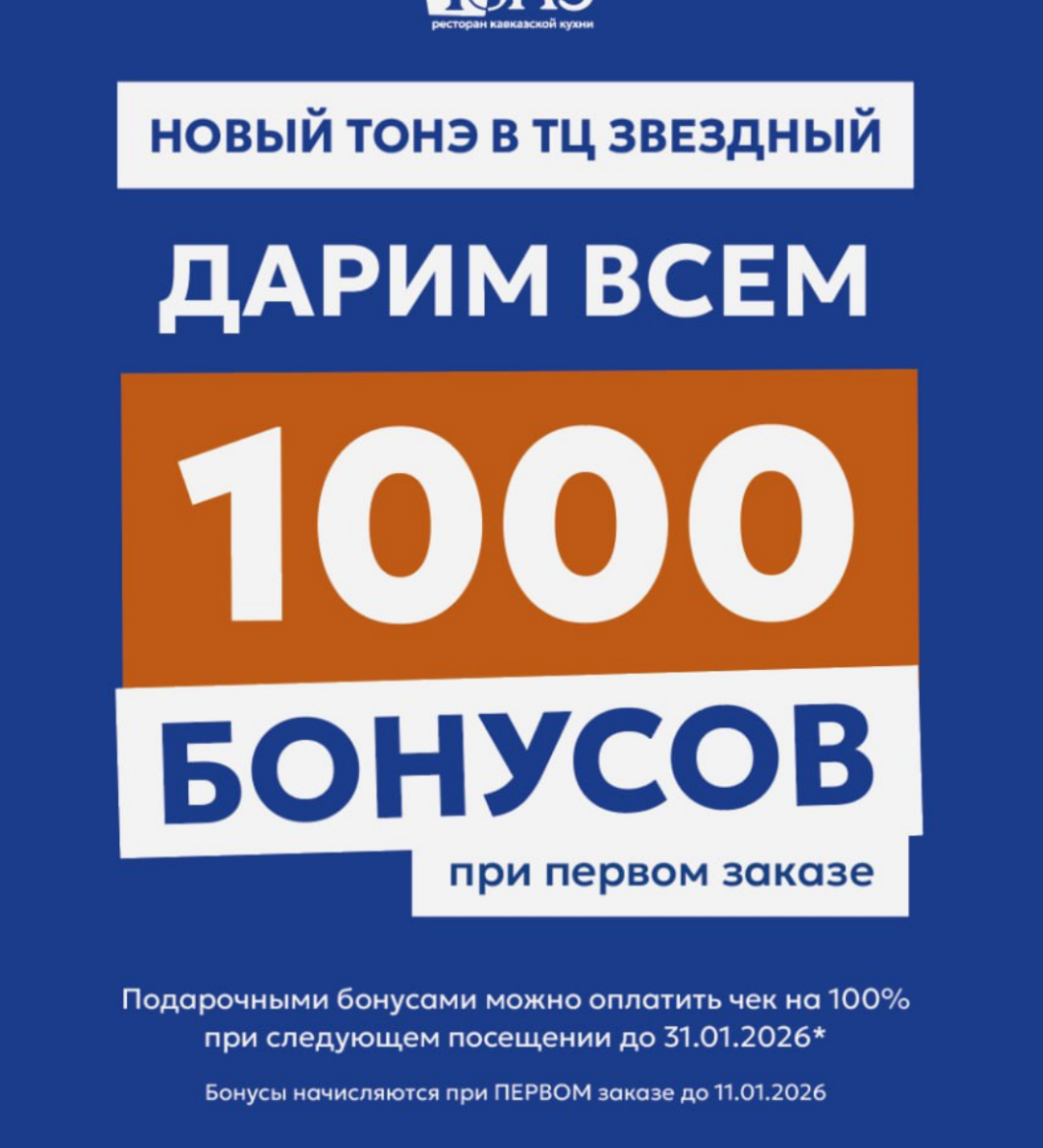 Мы дарим 1000 бонусов в честь открытия нового ресторана Тонэ в Сипайлово!
