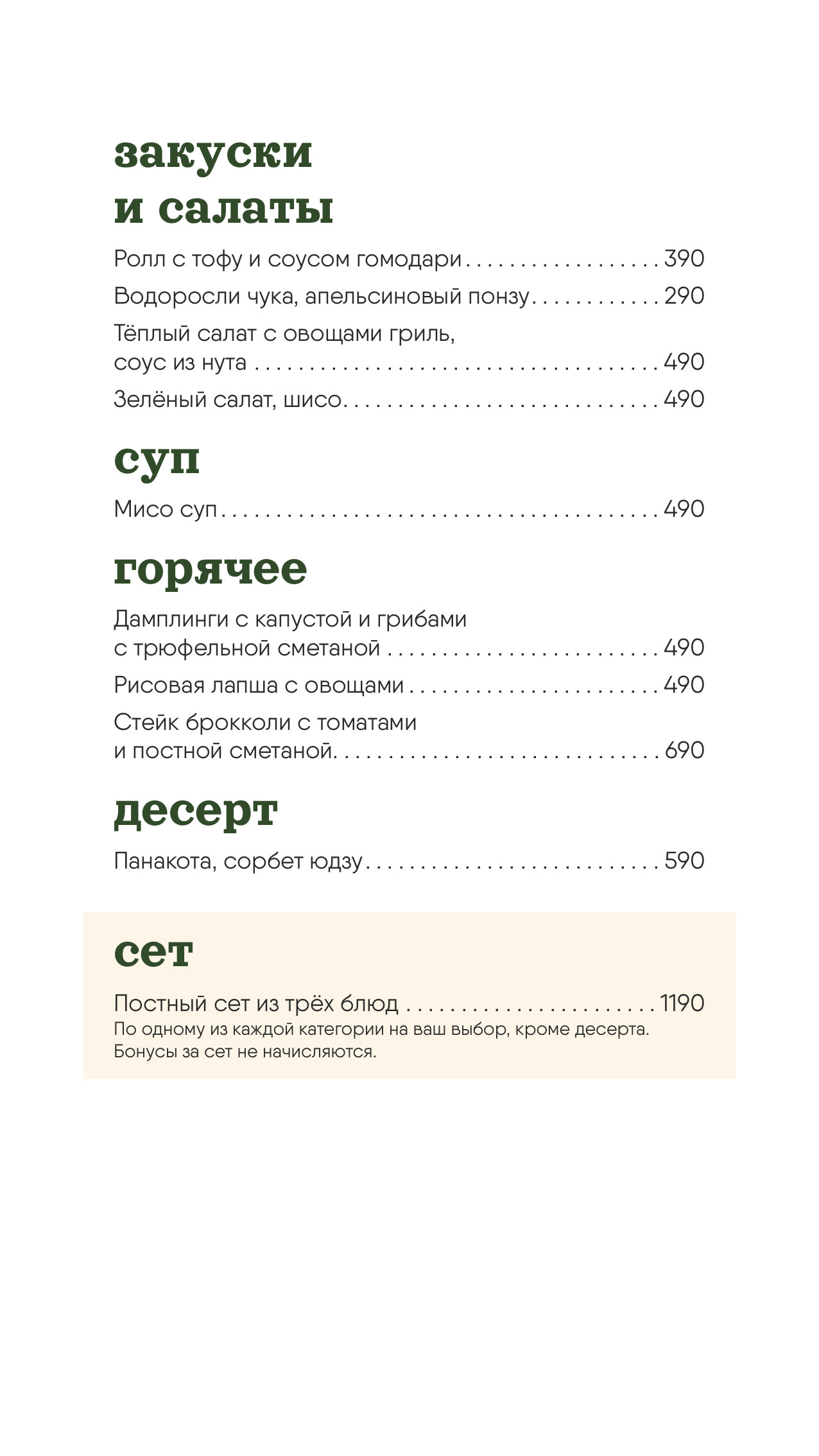 Специальное предложение из трёх блюд — по одному из каждой категории.